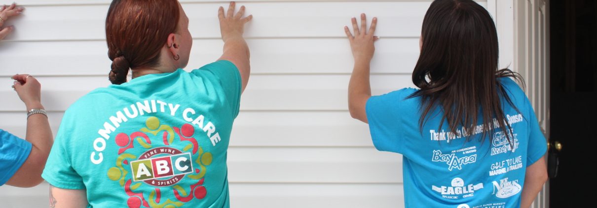 - Heather Rogers, left, and Daemon Wildes from ABC Fine Wine & Spirits, help install vinyl siding on a house during a recent Community Build Day at Habitat of Citrus Springs. ABC Fine Wine & Spirits’ team of 12 employees contributed 58 hours of work to various homes during their Community Build Day.